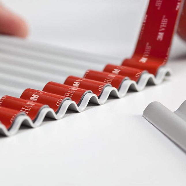 - šedé akrylové lepidlo o tloušťce 0,6 mm s přizpůsobitelným jádrem z akrylové pěny